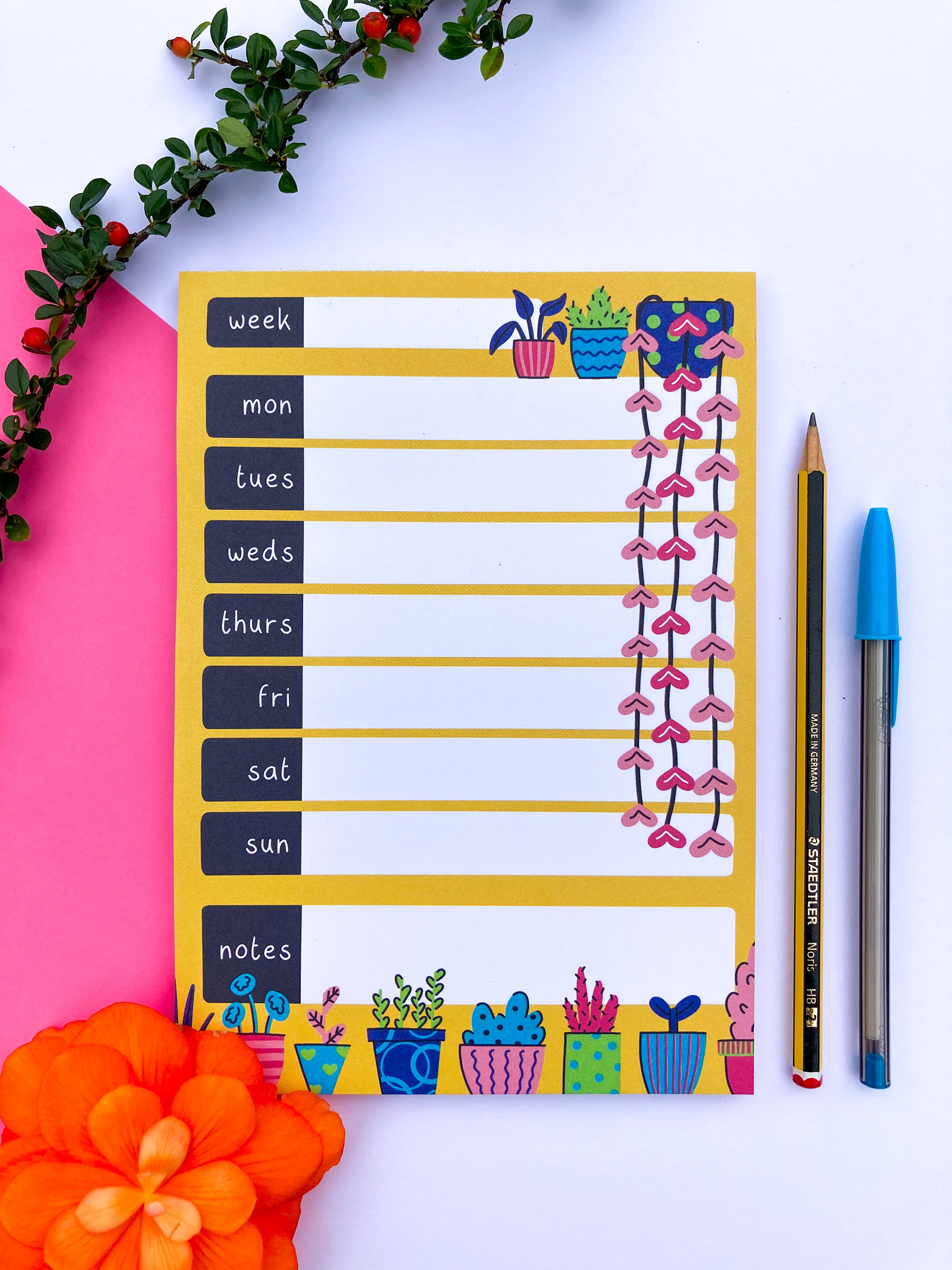 Images of my 2021 late summer shop update. I released a range of 4 organiser pads, all designed by myself and printed onto recycled paper with vegetable oil based inks.